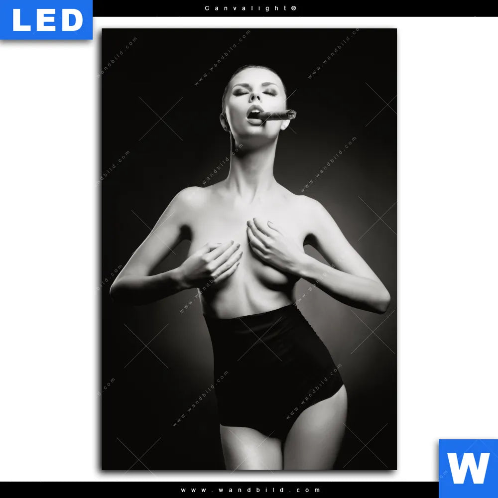 Canvalight® Leuchtbild | Dame mit Zigarre | Hochformat