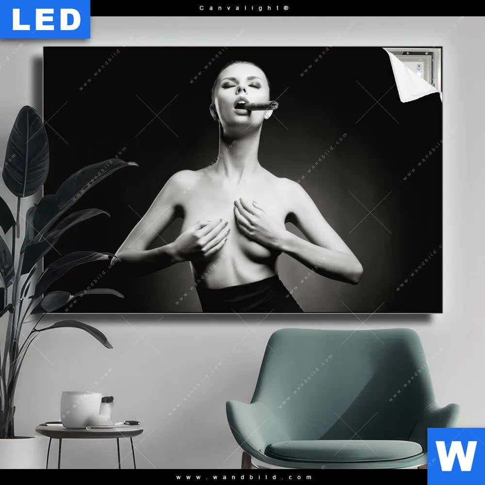 Canvalight® Leuchtbild | Dame mit Zigarre | Querformat