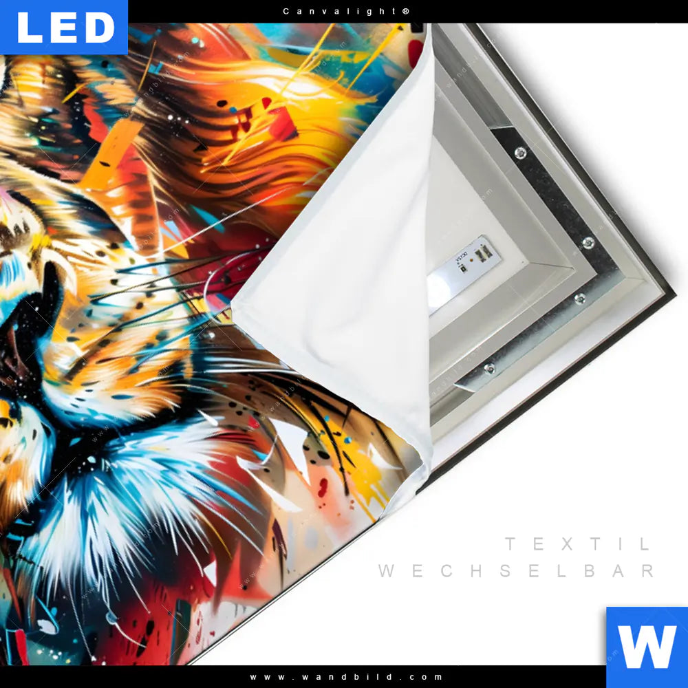 Canvalight® TEX Leuchtbild | Der Löwe - Urban Style | Querformat