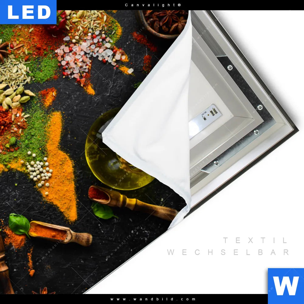 LED-Textilrahmen-Bild mit austauschbarem Essen - Trinken Textil-Druck (Wechselbild)