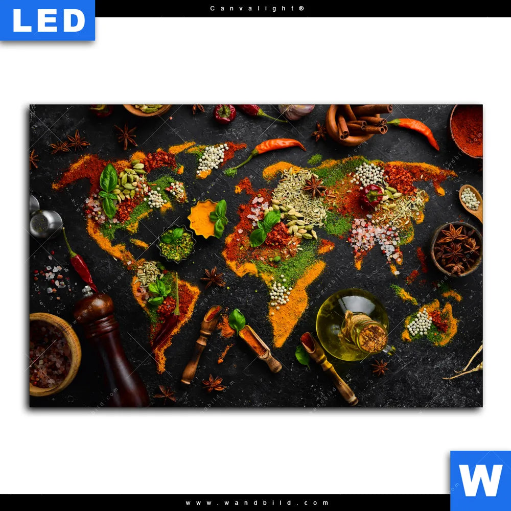 Canvalight® Leuchtbild | Die Weltkarte der Gewürze | Querformat