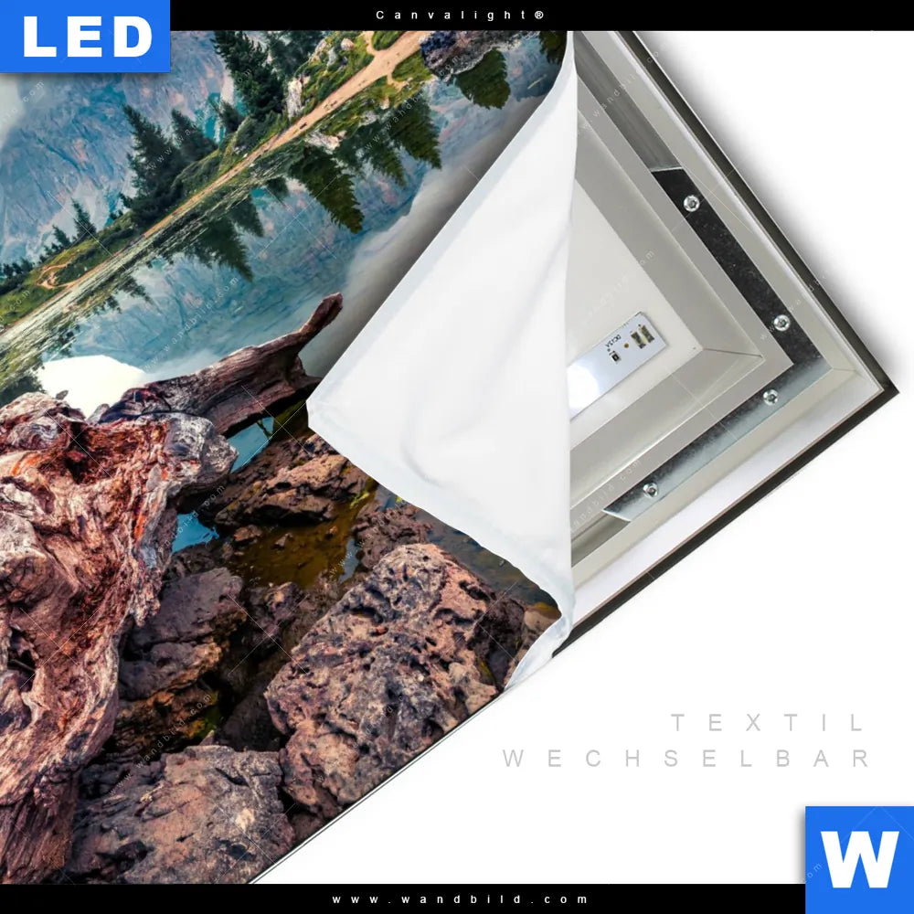 LED-Textilrahmen-Bild mit austauschbarem Landschaften Textil-Druck (Wechselbild)