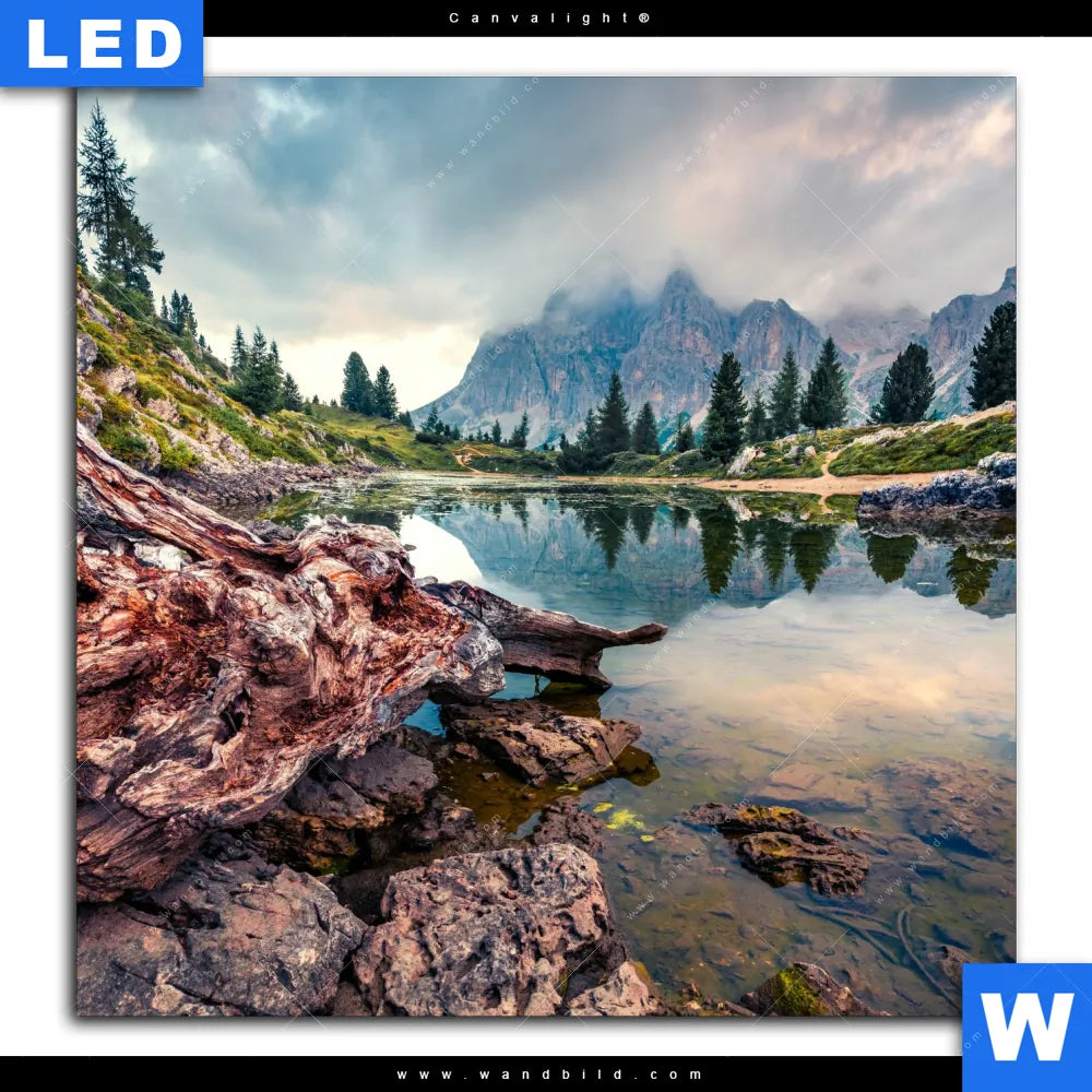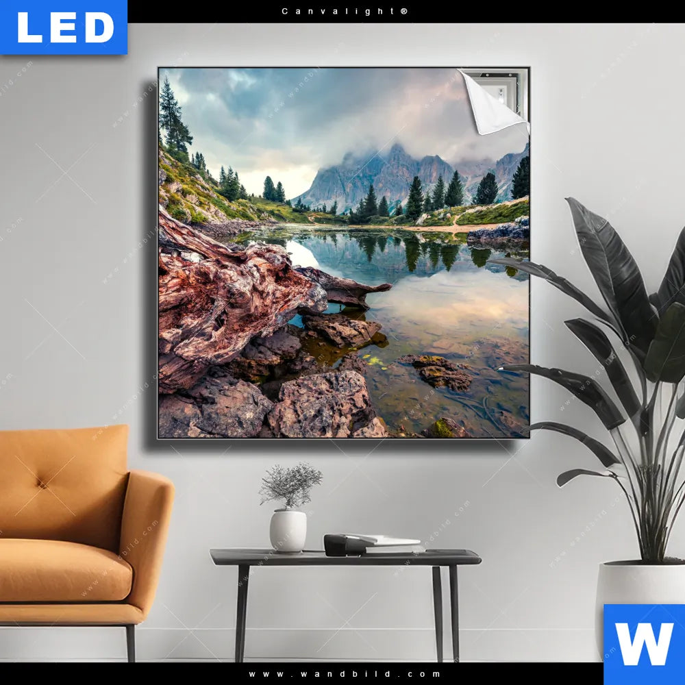Canvalight® Leuchtbild | Dramatischer Morgenblick am See | Quadrat