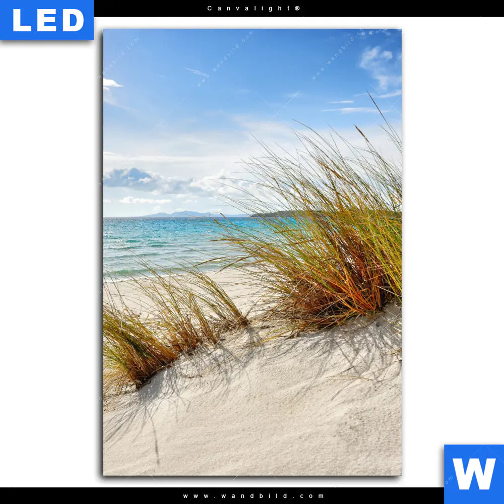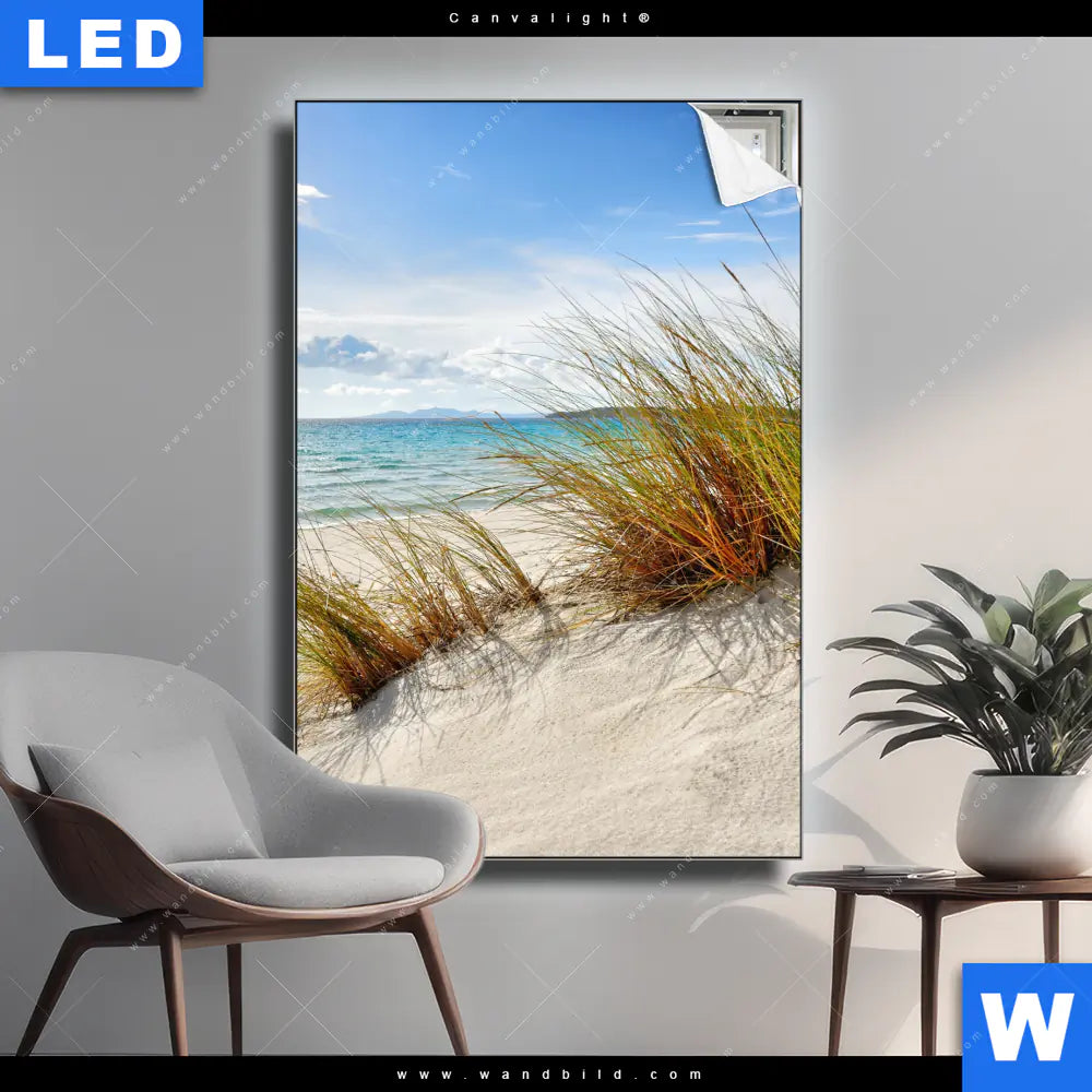 Canvalight® Leuchtbild | Dünenlandschaft mit Meerblick | Hochformat