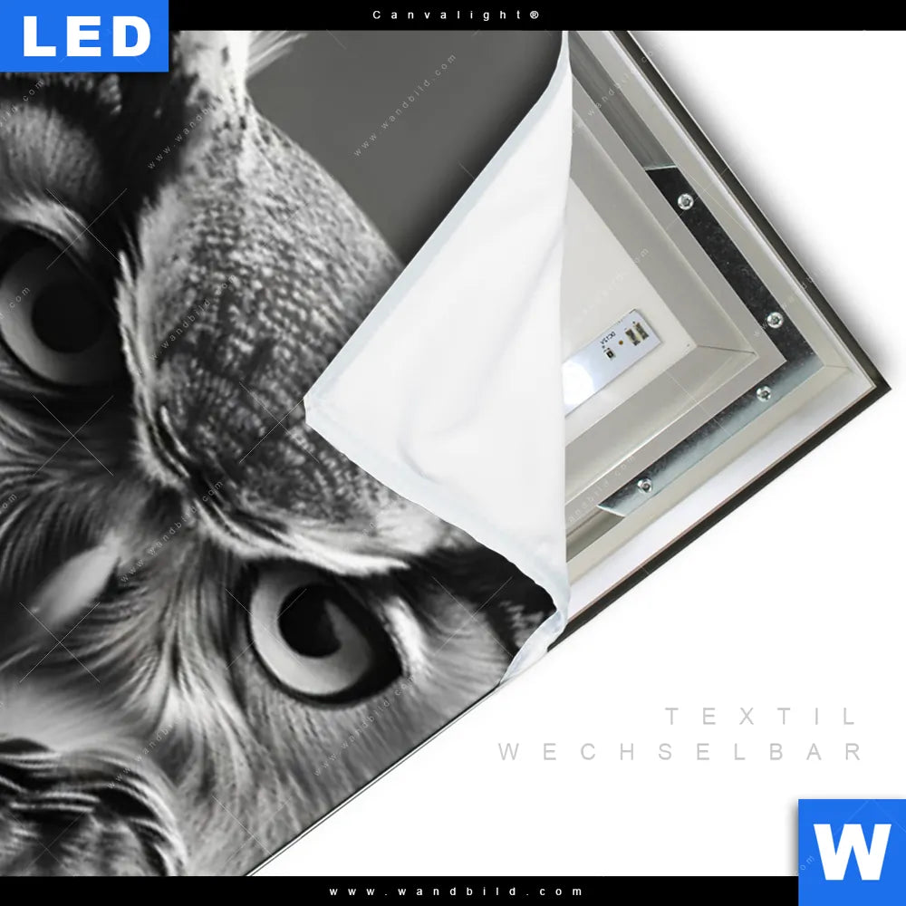 Canvalight® TEX Leuchtbild | Düstere Eleganz der Eule | Schmal