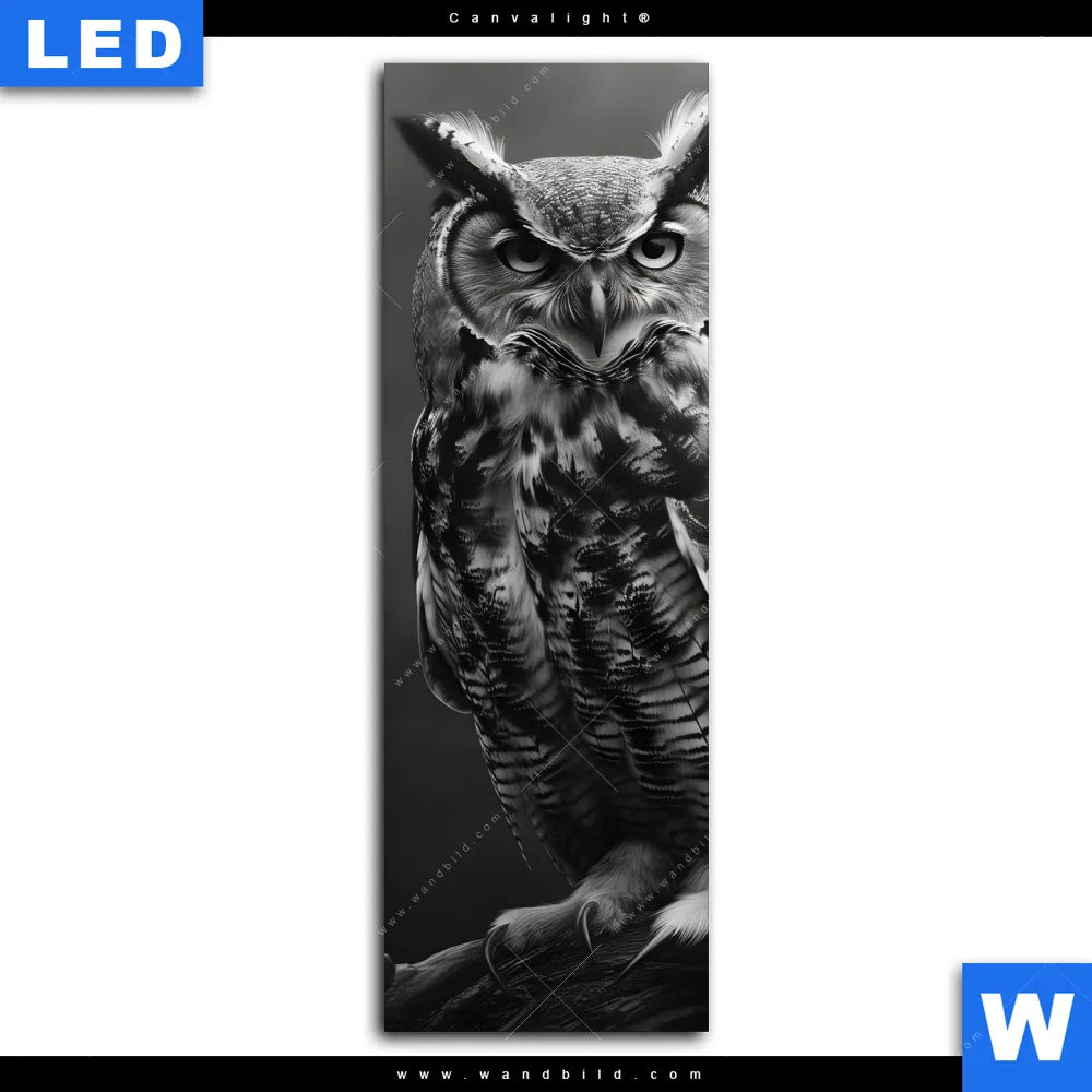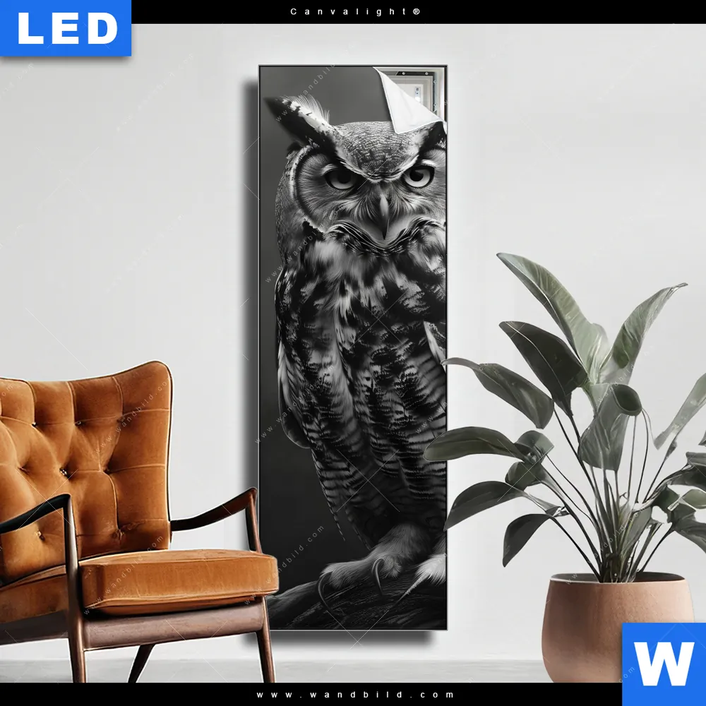 Canvalight® Leuchtbild | Düstere Eleganz der Eule | Schmal