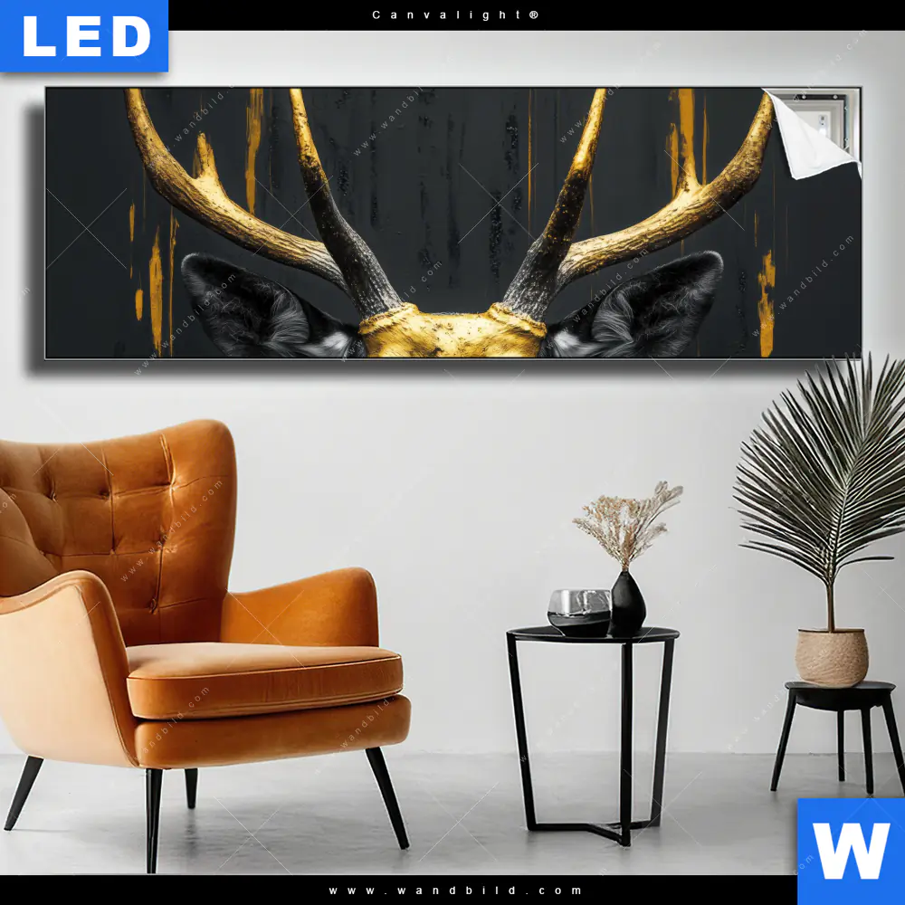 Canvalight® TEX Leuchtbild | Edler Hirsch in Fokus | Panorama