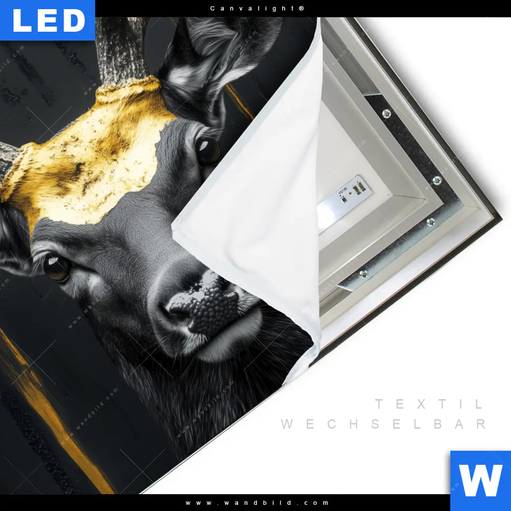 Canvalight® TEX Leuchtbild | Edler Hirsch in Fokus | Quadrat