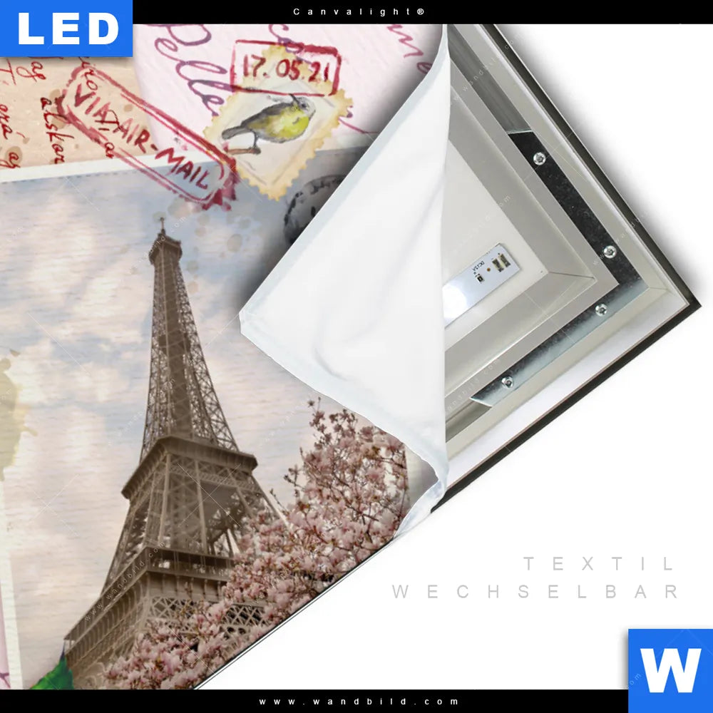 LED-Textilrahmen-Bild mit austauschbarem Städte - Skylines, Muster - Texturen, Fensterblick, Blumen - Botanik Textil-Druck (Wechselbild)