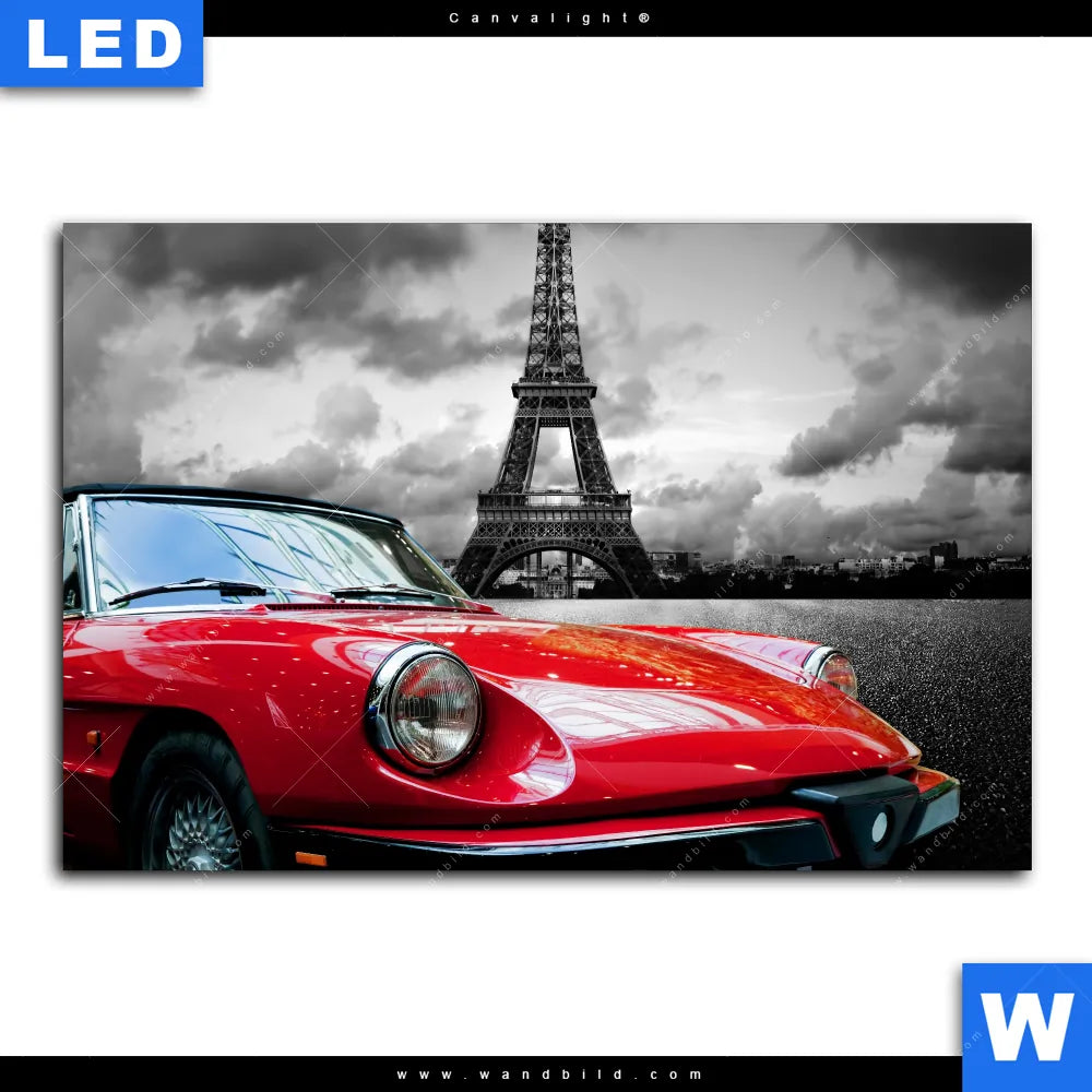 Canvalight® Leuchtbild | Eiffelturm & Rotes Auto | Querformat