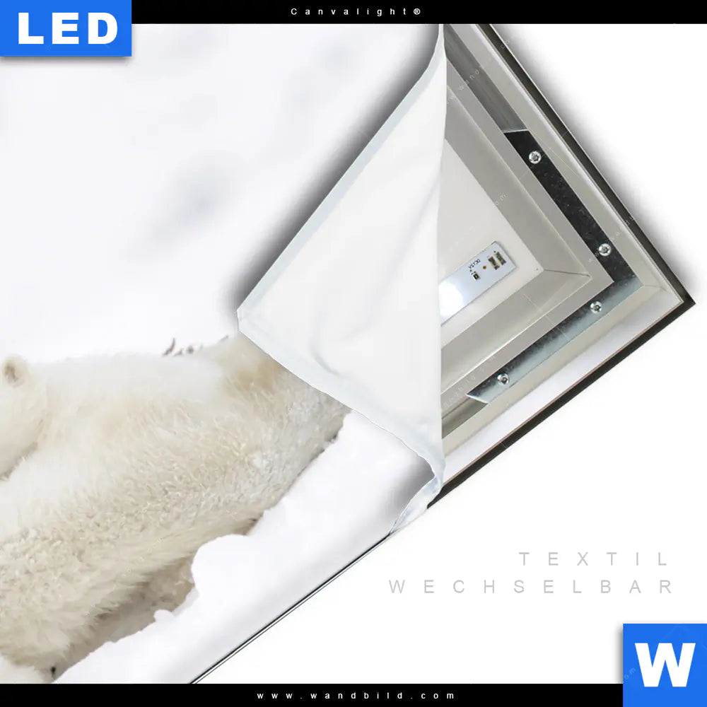 LED-Textilrahmen-Bild mit austauschbarem Tierwelt, Landschaften Textil-Druck (Wechselbild)