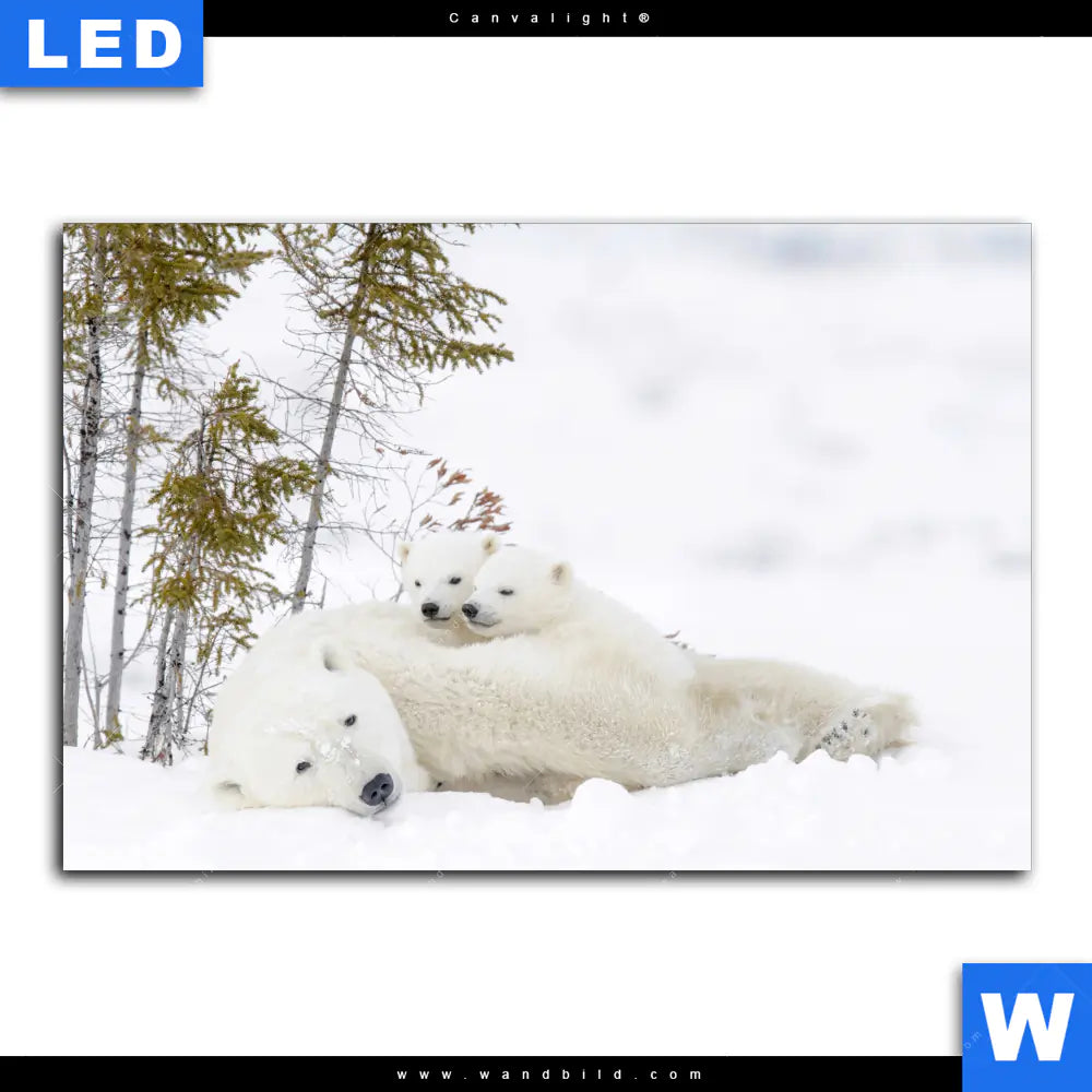 Canvalight® Leuchtbild | Eisbärenfamilie in winterlicher Landschaft | Querformat