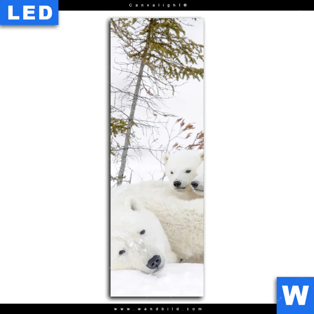 Canvalight® Leuchtbild | Eisbärenfamilie in winterlicher Landschaft | Schmal