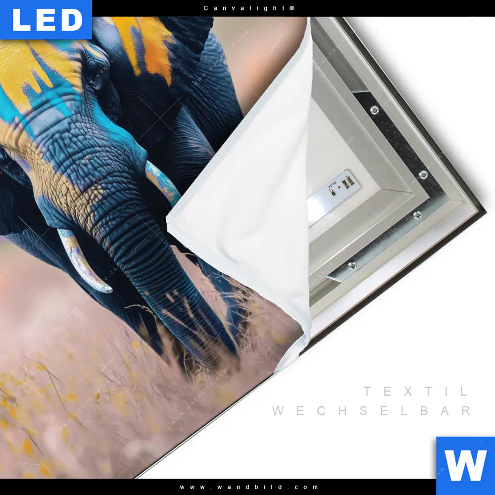 Canvalight® TEX Leuchtbild | Elefant - Farben der Wildnis | Quadrat