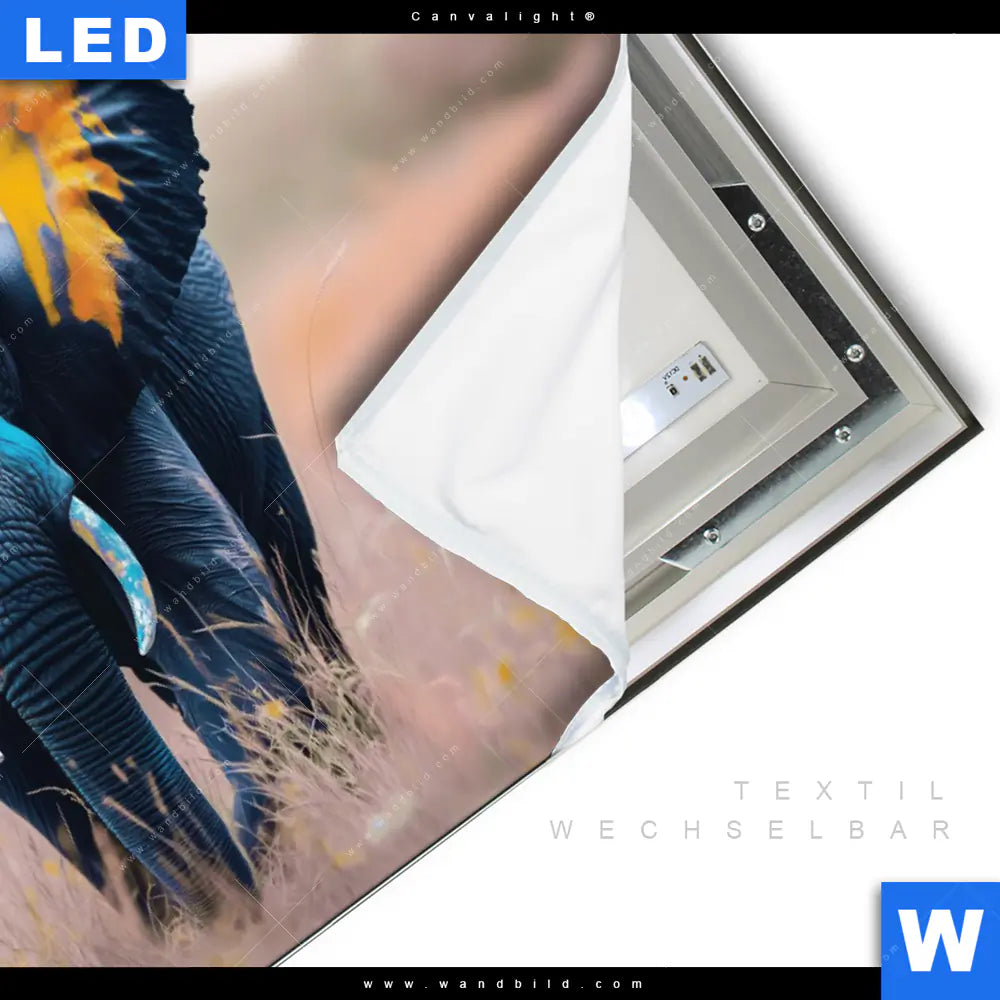 Canvalight® TEX Leuchtbild | Elefant - Farben der Wildnis | Querformat