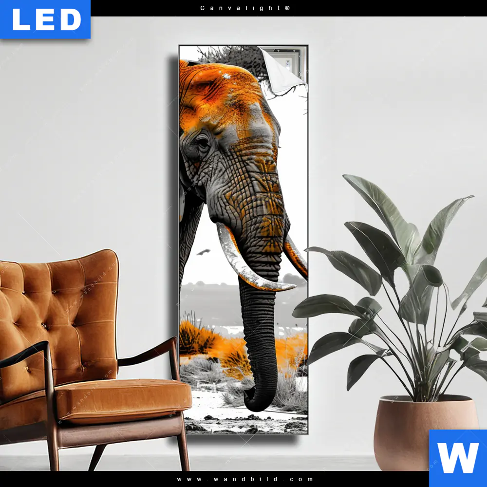 Canvalight® Leuchtbild | Elefant - Kraft der Wildnis | Schmal