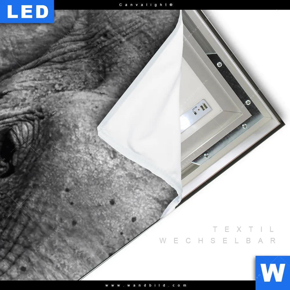 Canvalight® TEX Leuchtbild | Elefant Schwarzweiß | Schmal