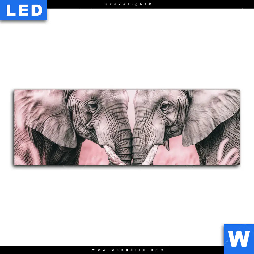 Canvalight® Leuchtbild | Elefanten - Harmonie in Pastell | Panorama