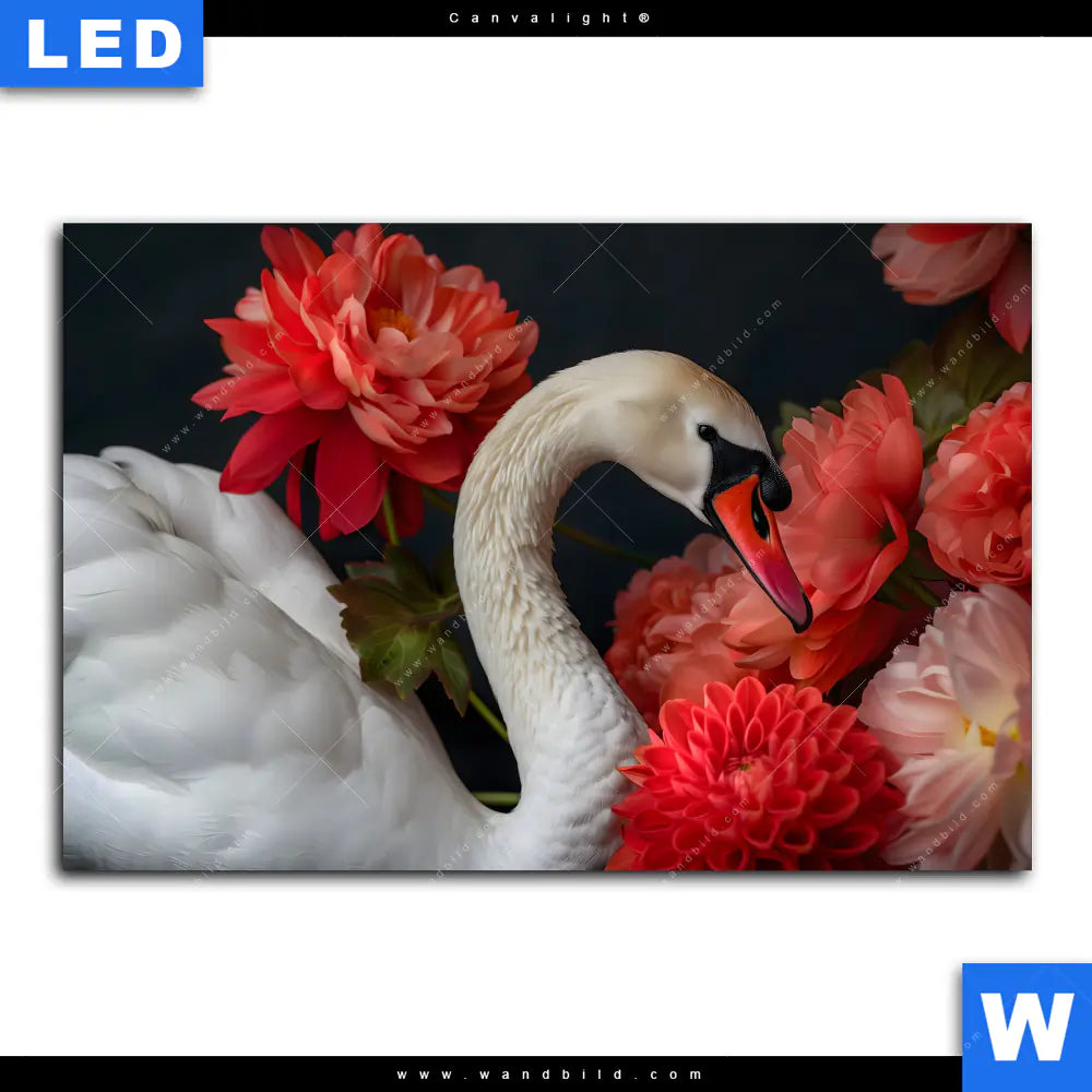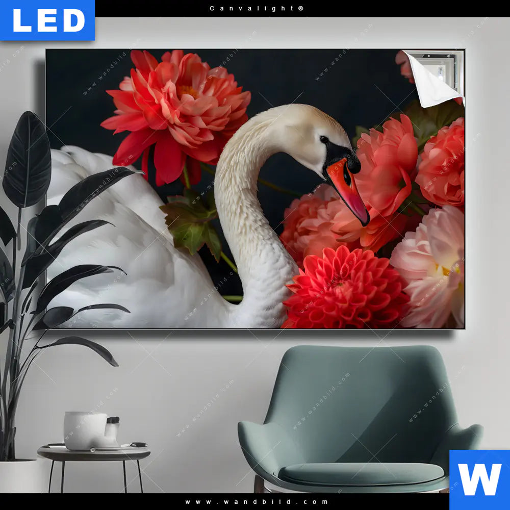 Canvalight® Leuchtbild | Eleganter Schwan mit Blumen | Querformat