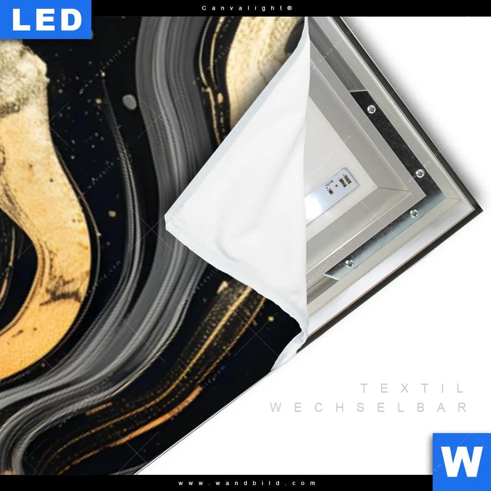 Canvalight® TEX Leuchtbild | Elegantes gold-schwarzes Porträt | Panorama