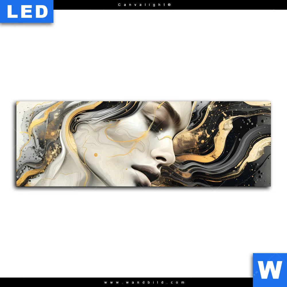 Canvalight® Leuchtbild | Elegantes gold-schwarzes Porträt | Panorama