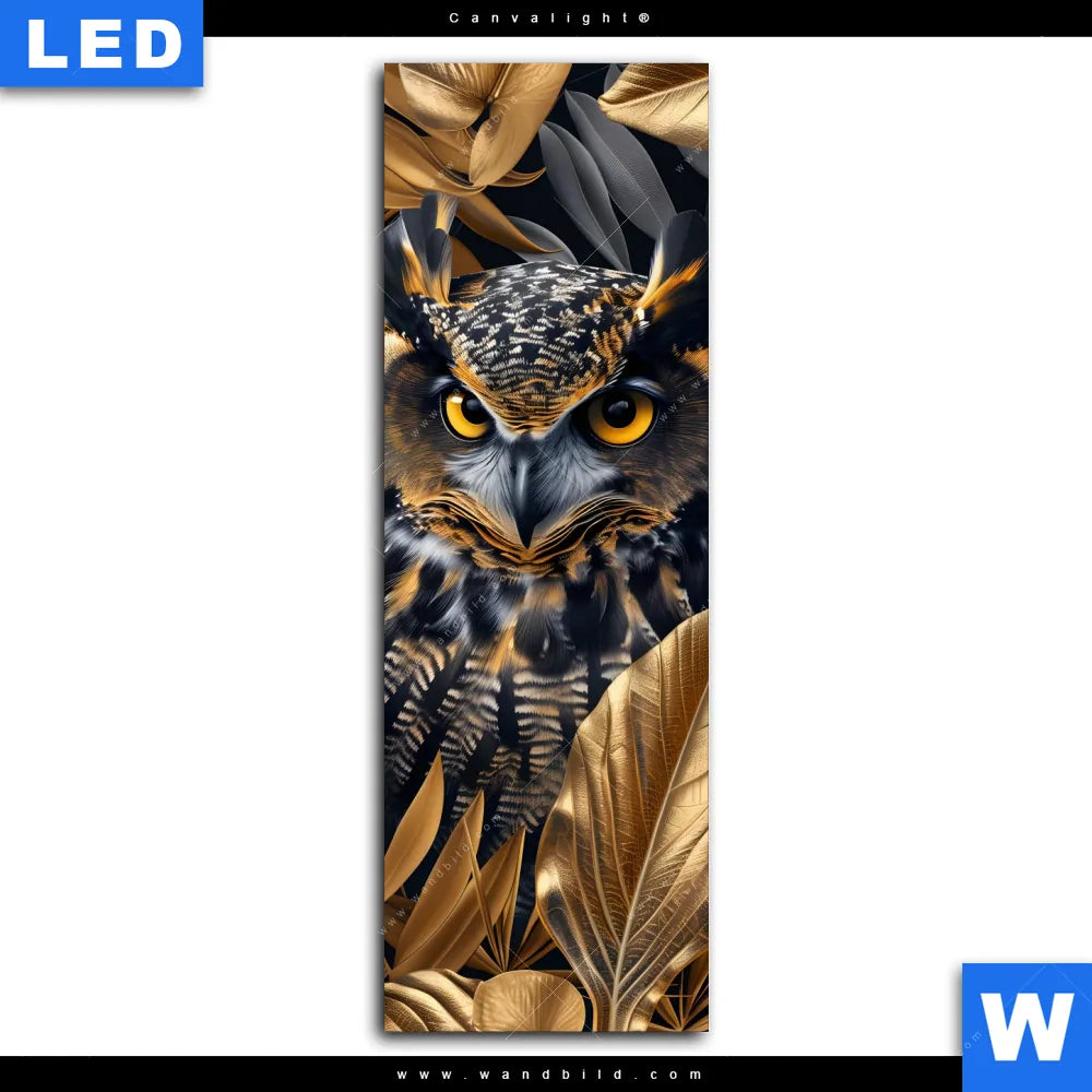 Canvalight® Leuchtbild | Eule und goldene Blätter | Schmal
