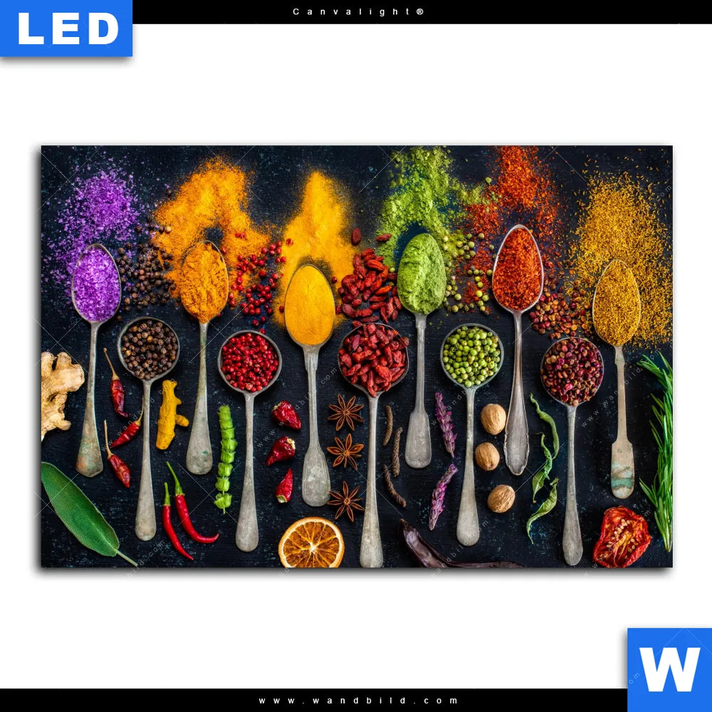 Canvalight® Leuchtbild | Exotische Gewürze auf Löffeln | Querformat