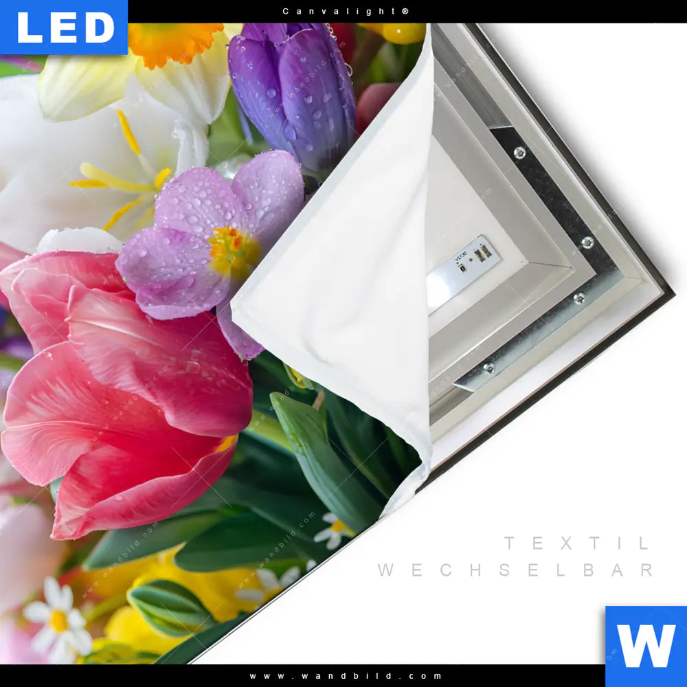 Canvalight® TEX Leuchtbild | Farbenfrohe Frühlingsblüten | Quadrat
