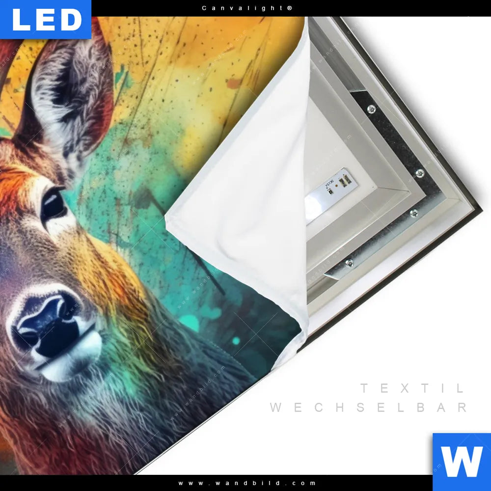 Canvalight® TEX Leuchtbild | Farbenfrohes Hirschporträt | Querformat