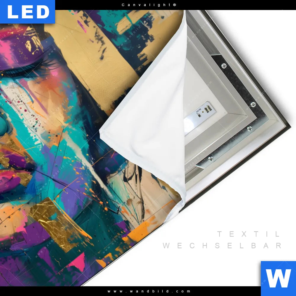 Canvalight® TEX Leuchtbild | Farbexplosion - Porträt Florence | Querformat