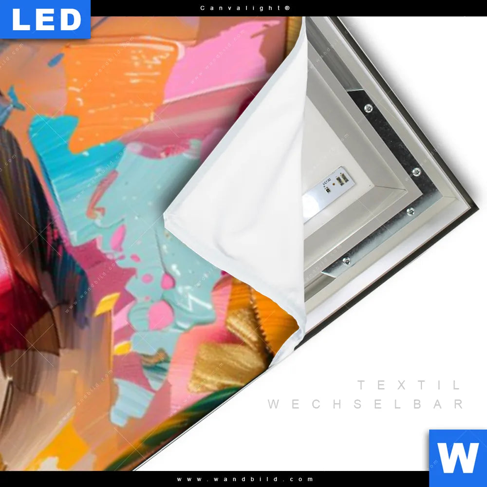 LED-Textilrahmen-Bild mit austauschbarem Porträts - Menschen Textil-Druck (Wechselbild)