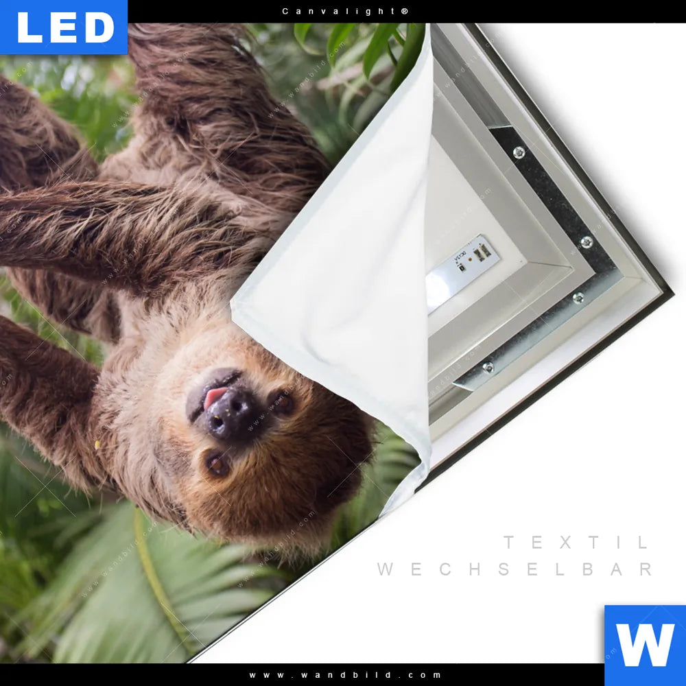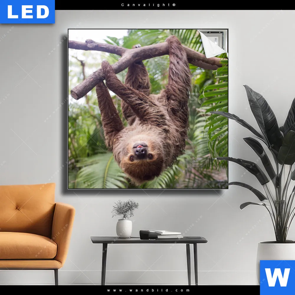 Canvalight® TEX Leuchtbild | Faultier streckt Zunge raus | Quadrat