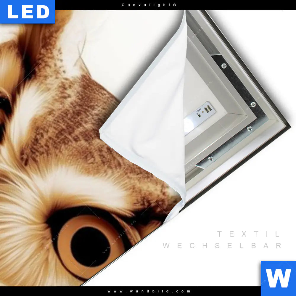 LED-Textilrahmen-Bild mit austauschbarem Tierwelt, Blumen - Botanik Textil-Druck (Wechselbild)