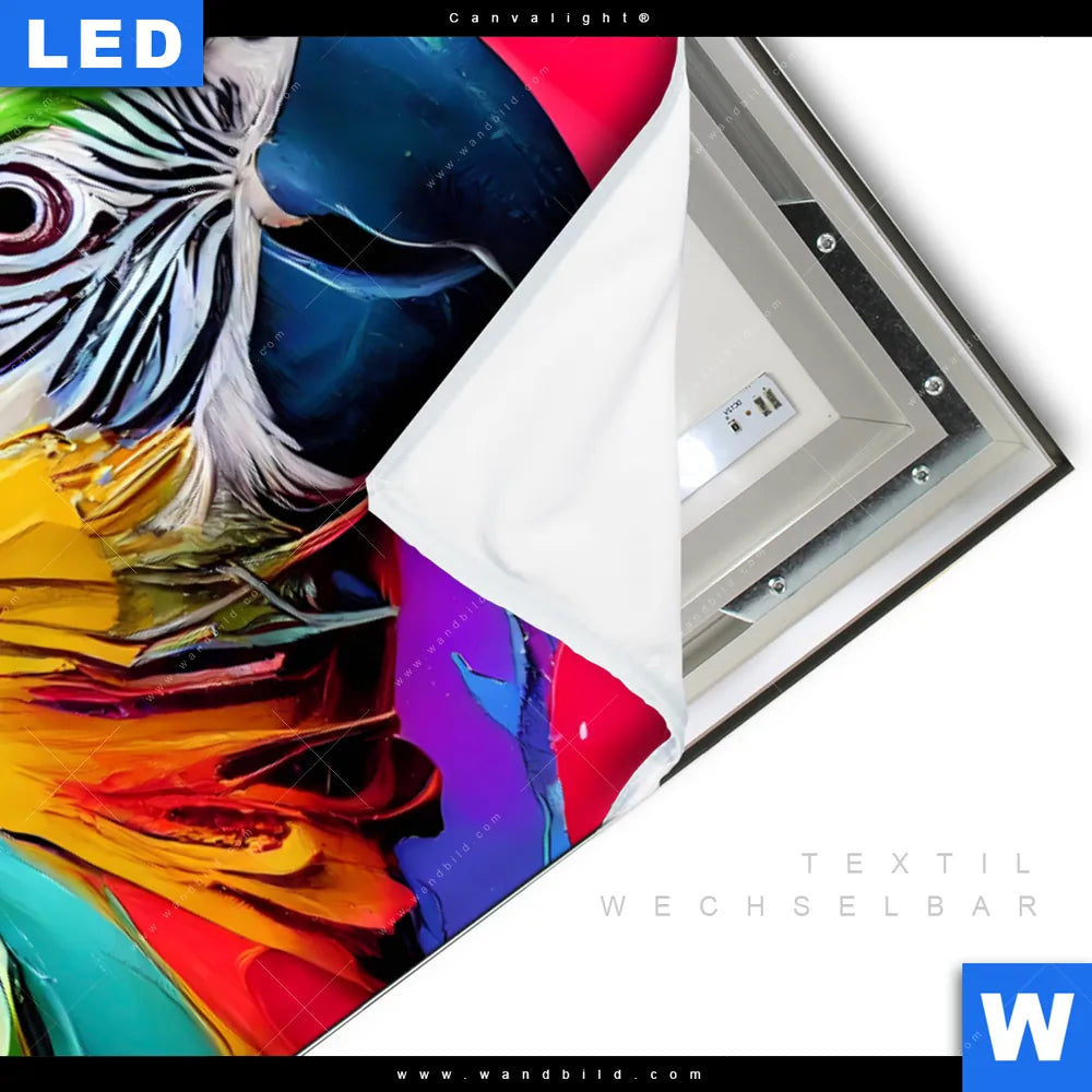 Canvalight® TEX Leuchtbild | Federn Papagei | Querformat
