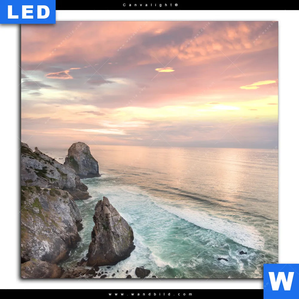 Canvalight® Leuchtbild | Felsen am Meer | Quadrat