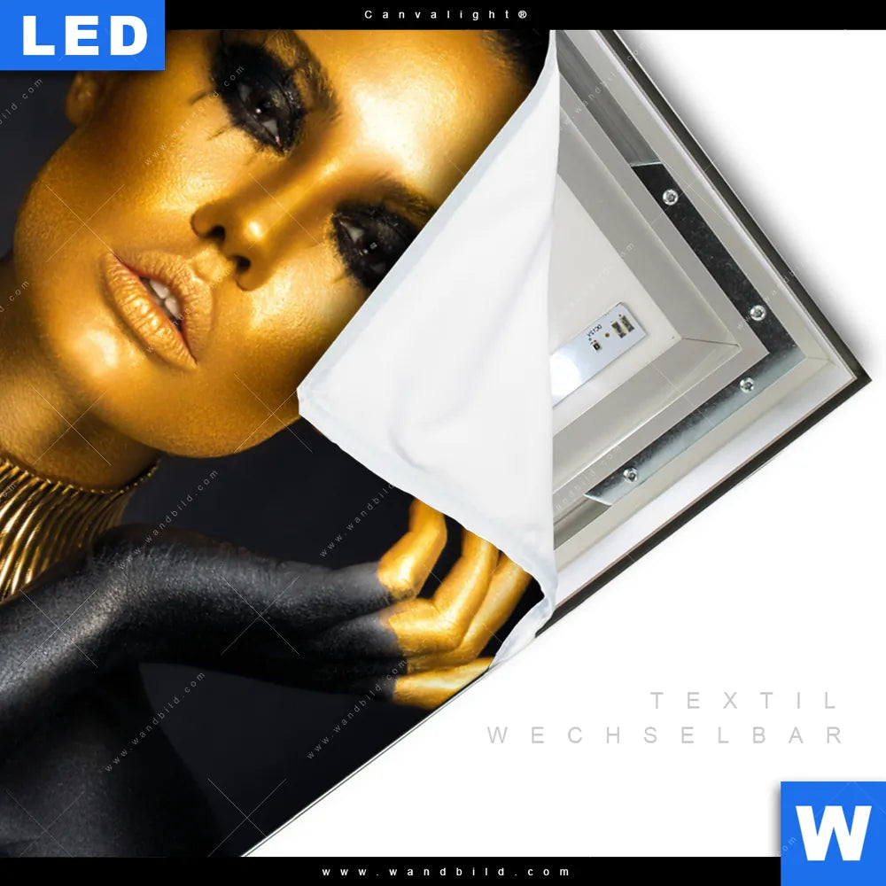 LED-Textilrahmen-Bild mit austauschbarem Porträts - Menschen Textil-Druck (Wechselbild)