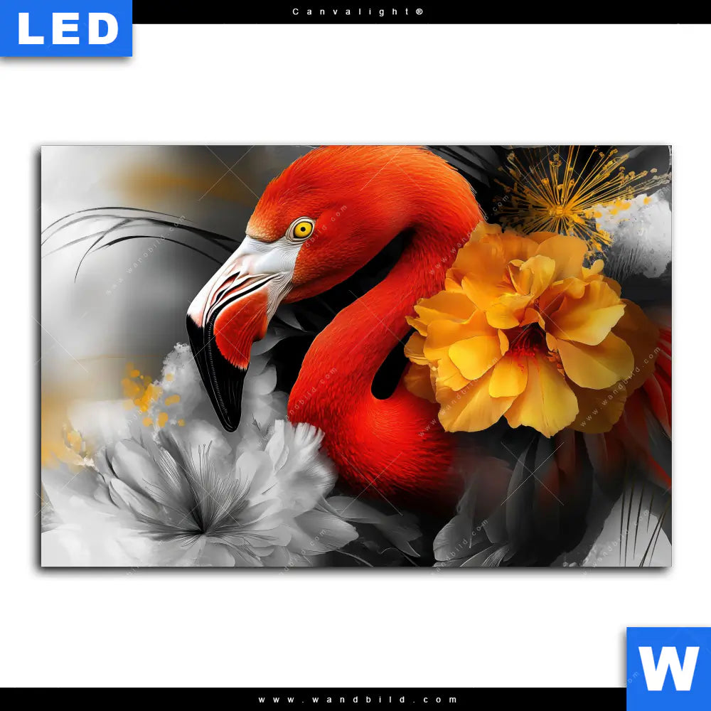 Canvalight® Leuchtbild | Flamingo & Blüten | Querformat