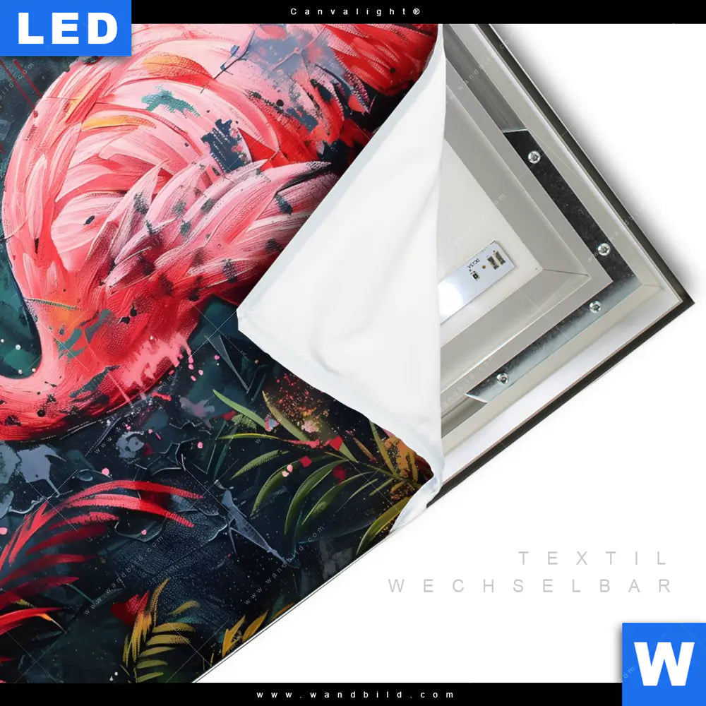 Canvalight® TEX Leuchtbild | Flamingo - Dschungel Eleganz | Quadrat