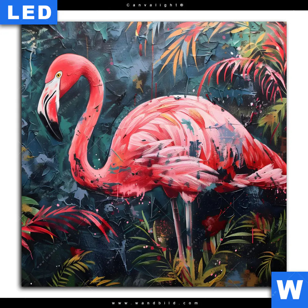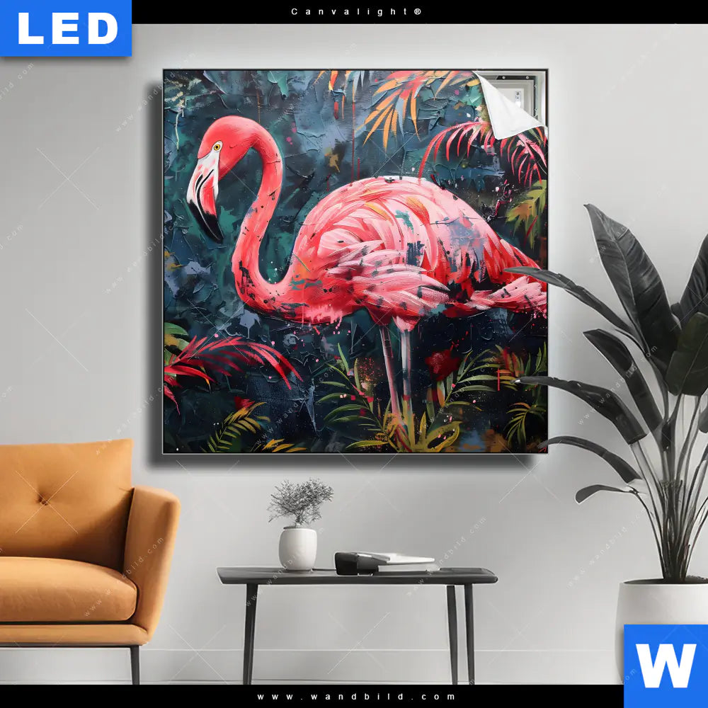 Canvalight® Leuchtbild | Flamingo - Dschungel Eleganz | Quadrat