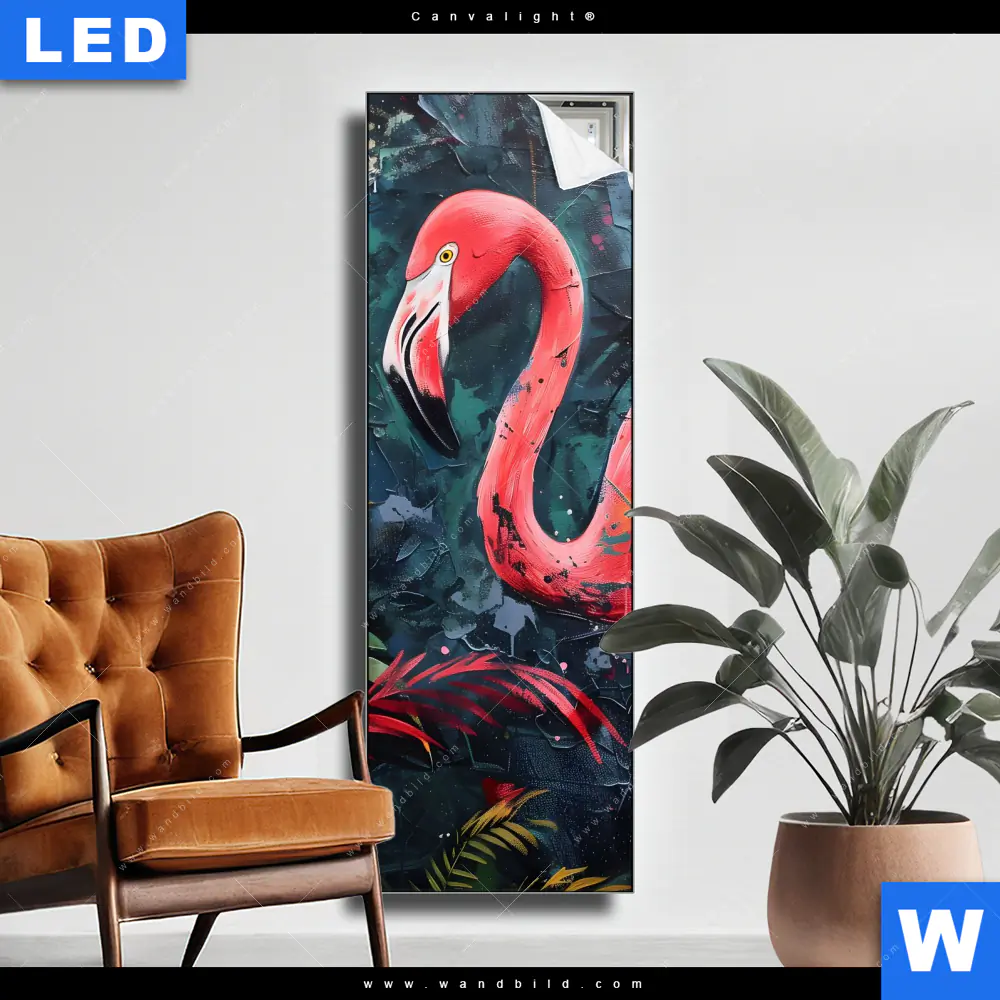 Canvalight® TEX Leuchtbild | Flamingo - Dschungel Eleganz | Schmal