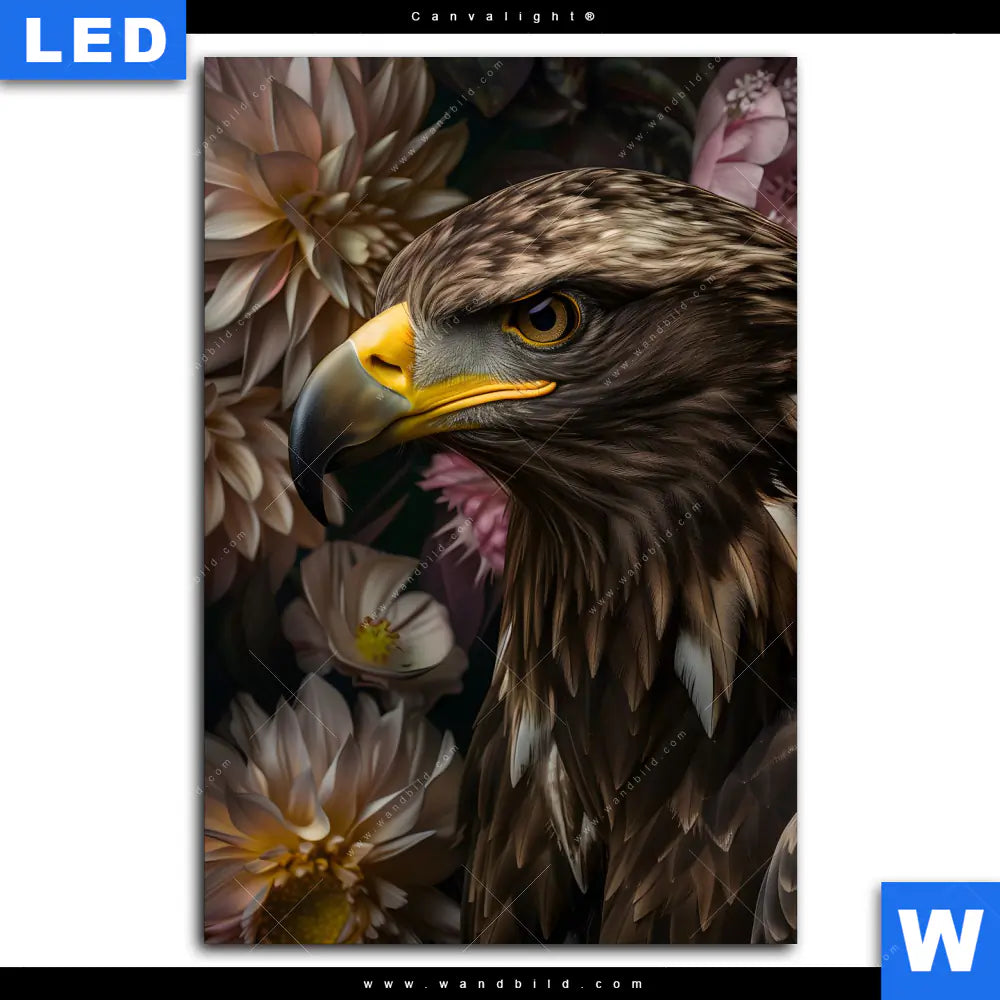 Canvalight® Leuchtbild | Florale Eleganz und Adlerblick | Hochformat