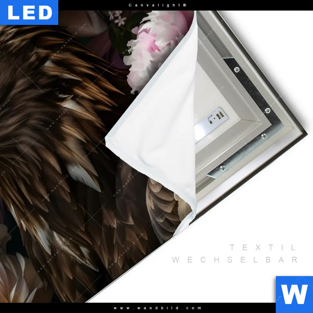 Canvalight® TEX Leuchtbild | Florale Eleganz und Adlerblick | Querformat