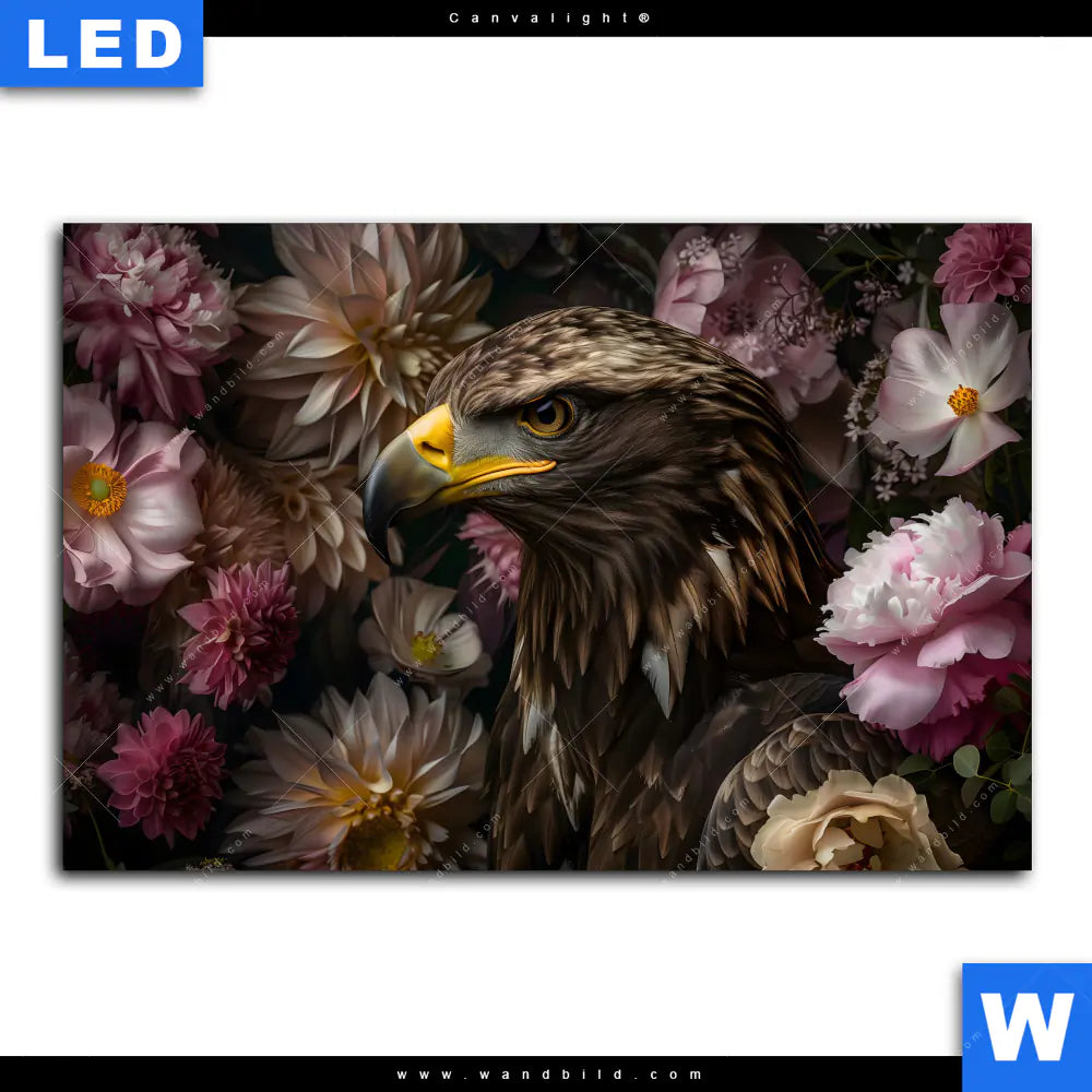 Canvalight® Leuchtbild | Florale Eleganz und Adlerblick | Querformat