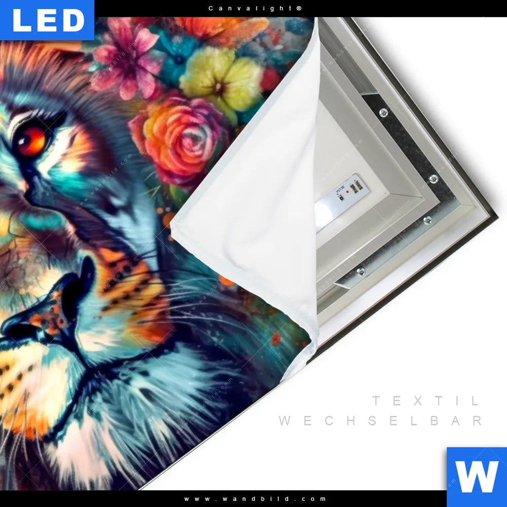 Canvalight® TEX Leuchtbild | Floraler Löwe | Querformat