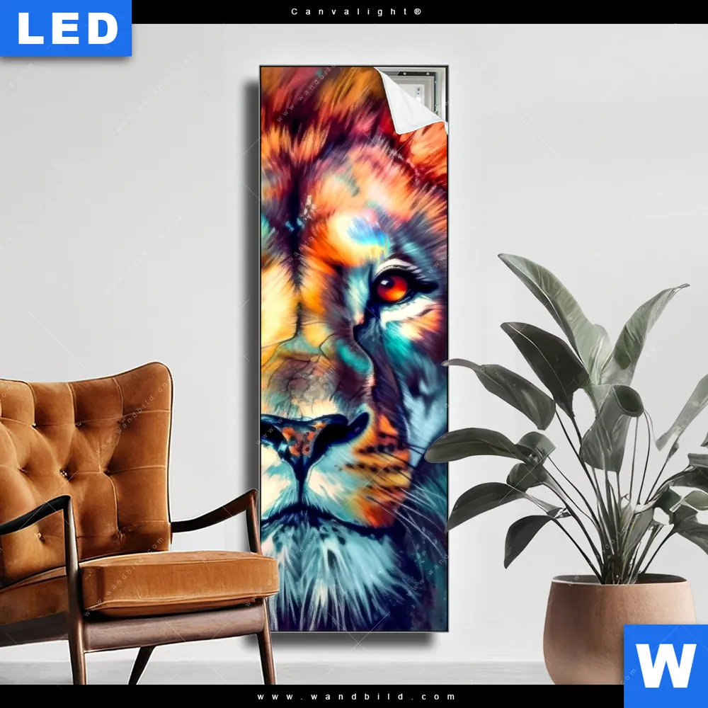 Canvalight® Leuchtbild | Floraler Löwe | Schmal