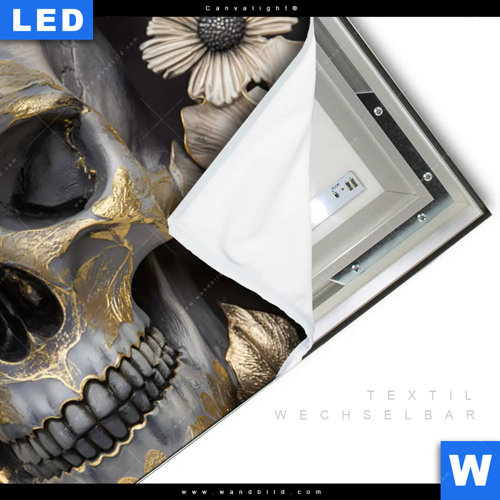 Canvalight® TEX Leuchtbild | Floraler Totenschädel | Querformat