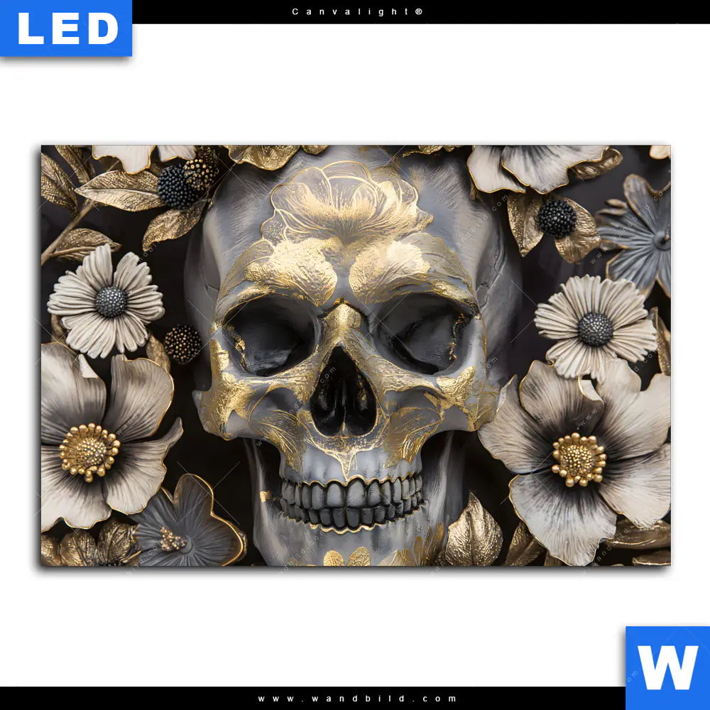 Canvalight® Leuchtbild | Floraler Totenschädel | Querformat