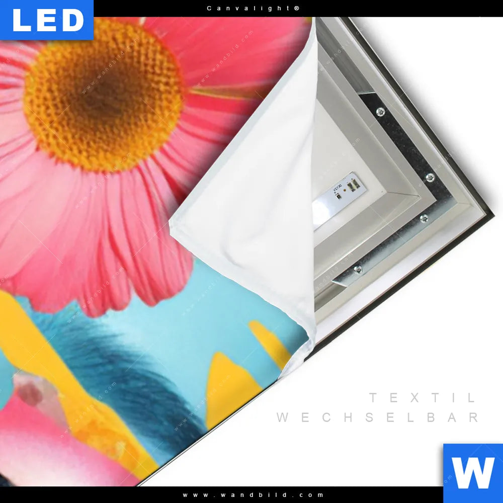 LED-Textilrahmen-Bild mit austauschbarem Porträts - Menschen, Blumen - Botanik Textil-Druck (Wechselbild)