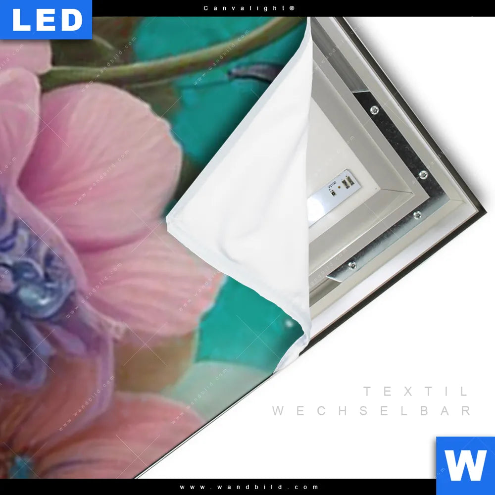 LED-Textilrahmen-Bild mit austauschbarem Porträts - Menschen, Blumen - Botanik Textil-Druck (Wechselbild)