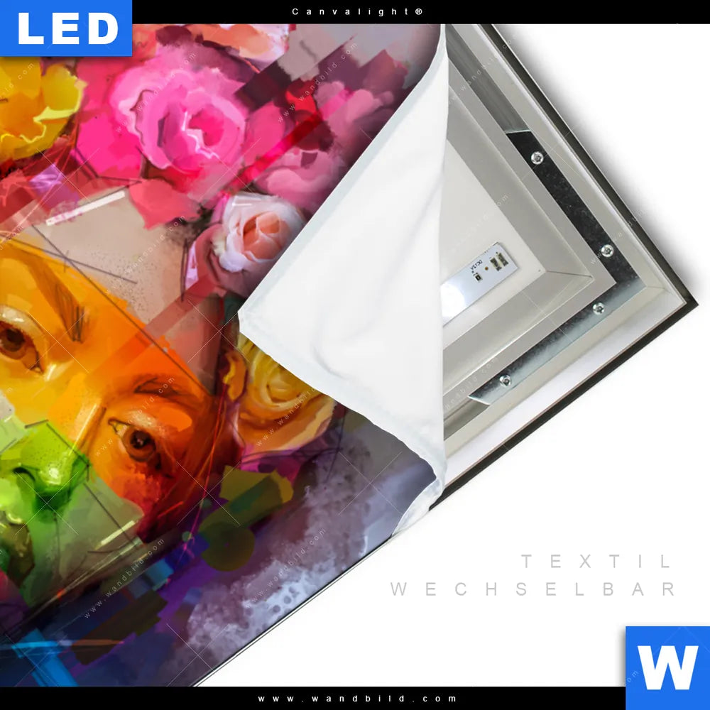 LED-Textilrahmen-Bild mit austauschbarem Porträts - Menschen, Blumen - Botanik Textil-Druck (Wechselbild)